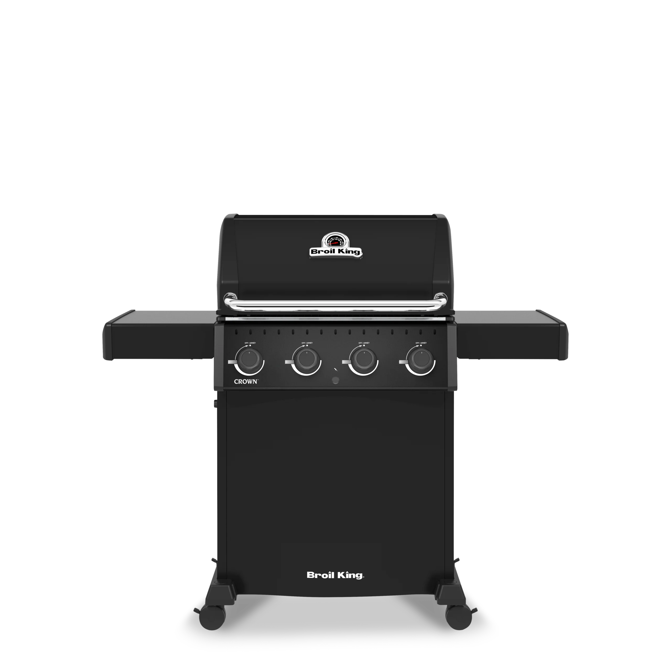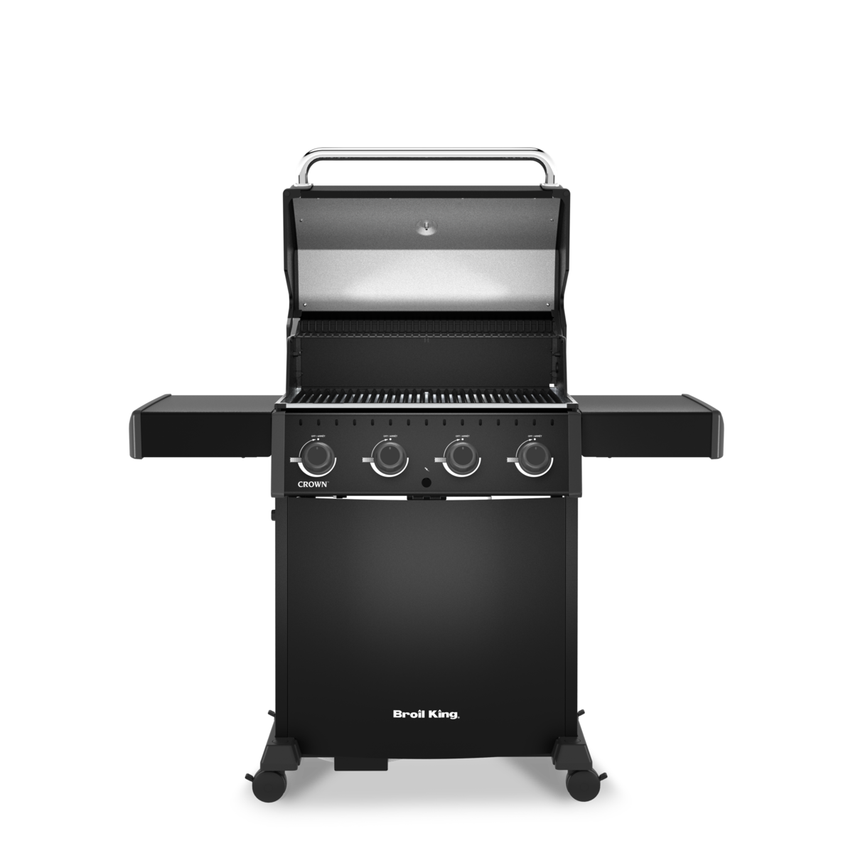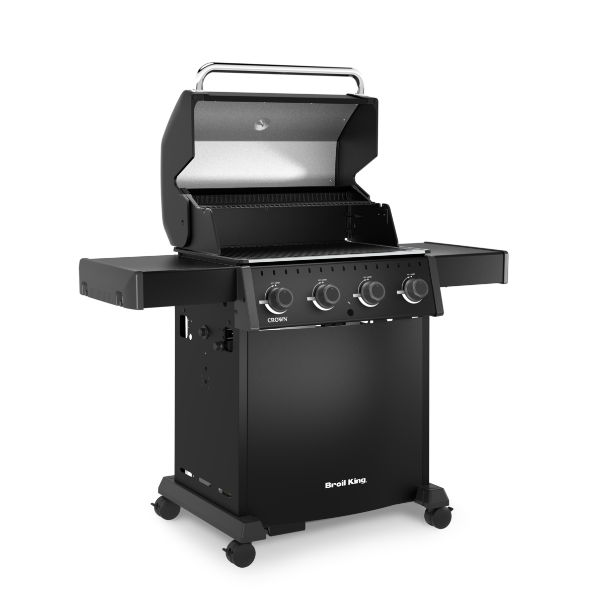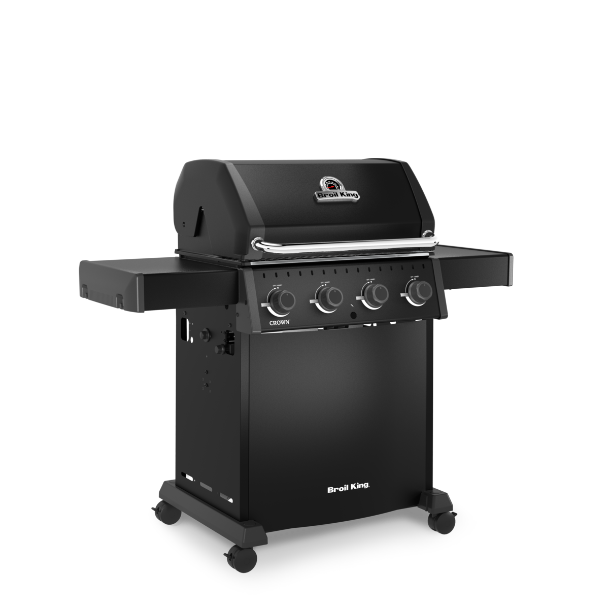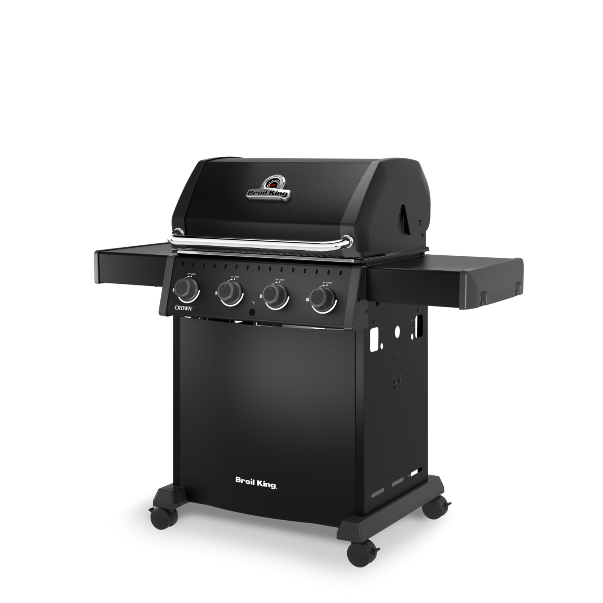 Broil King Crown™ 410 SHADOW je zanesljiv plinski žar s 4 gorilniki, enostavno uporabo in odličnimi rezultati peke za vsakodnevno uporabo.