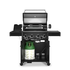 Žar je opremljen s štirimi zmogljivimi gorilniki iz nerjavečega jekla, ki zagotavljajo enakomerno segrevanje po celotni površini za peko. Poleg tega vključuje tudi stranski gorilnik (Side Burner), ki omogoča pripravo prilog, omak ali kuhanje v posodi, ter zadnji gorilnik za uporabo z vrtljivim ražnjem (Rotisserie Burner), kar omogoča pripravo sočnih pečenk in piščanca na profesionalnem nivoju.