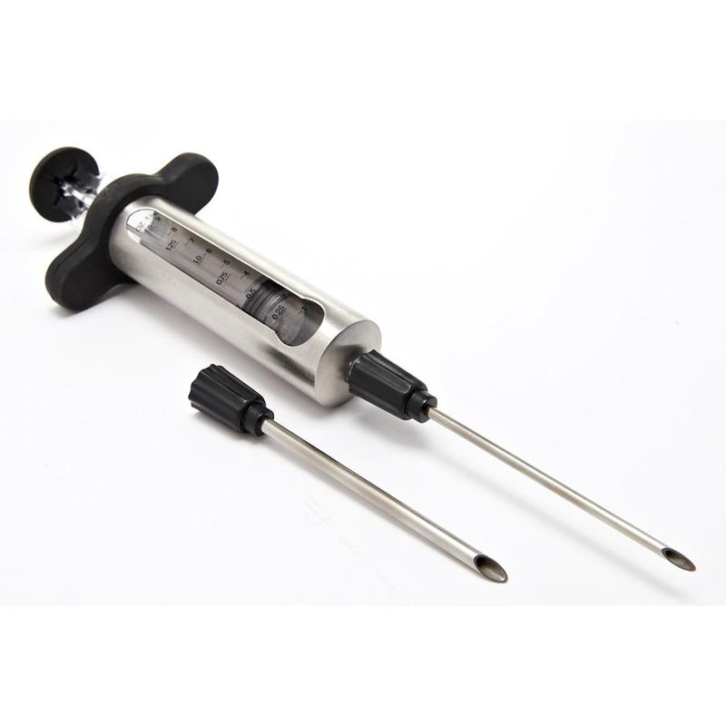 Injektor je izdelan iz trpežnih materialov, kot so nerjaveče jeklo in robustna plastika, kar zagotavlja dolgo življenjsko dobo in odpornost proti obrabi. Opremljen je z merilnimi oznakami za natančno odmerjanje količine marinade.