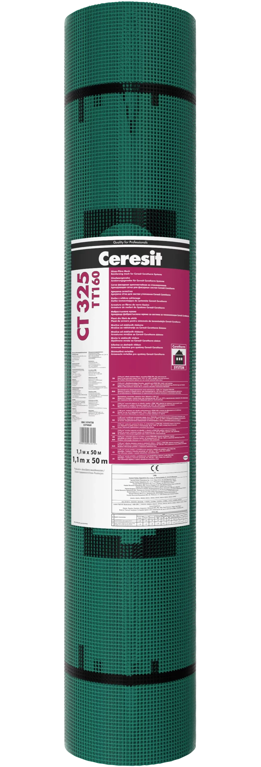 Ceresit CT 325 je kakovostna steklena fasadna mrežica, namenjena armiranju osnovnega sloja v kontaktnih fasadnih sistemih. Uporablja se v kombinaciji s fasadnimi lepili in armirnimi masami ter zagotavlja večjo mehansko trdnost in odpornost fasade proti razpokam.