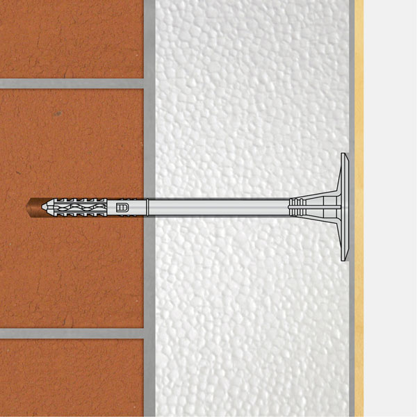 Fasadno sidro s kovinskim jedrom za zanesljivo mehansko pritrditev toplotne izolacije v fasadnih sistemih.