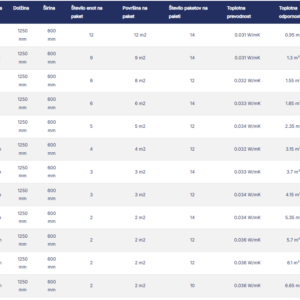 Izdelek je na voljo v debelinah od 2 do 20 cm, kar omogoča prilagoditev različnim tehničnim zahtevam in konstrukcijskim rešitvam. Zaradi odpornosti na staranje in zanesljivih izolativnih lastnosti predstavlja trajno rešitev za energijsko učinkovito gradnjo.