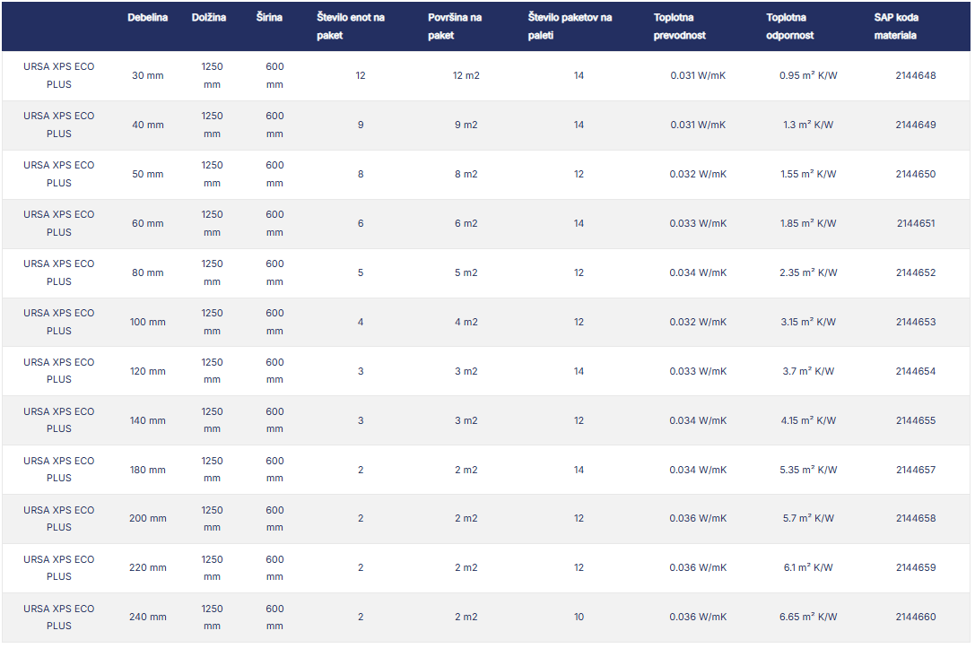 URSA XPS ECO PLUS je visokokakovostna toplotnoizolacijska plošča iz ekstrudiranega polistirena, namenjena uporabi v zahtevnejših gradbenih konstrukcijah. Zaradi zaprte celične strukture material zagotavlja zelo nizko vpojnost vode ter visoko tlačno trdnost.