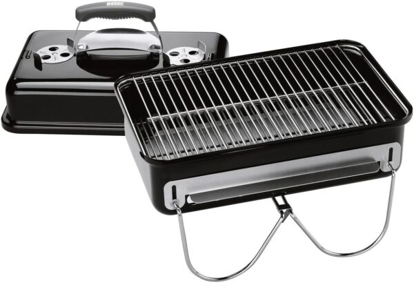 Go-Anywhere Charcoal je lahek in enostaven za prenašanje, zahvaljujoč prenosnim ročajem in zložljivim nogam, ki zaklenejo pokrov za varen transport. Njegova kompaktna oblika omogoča enostavno shranjevanje in uporabo na manjših prostorih.
